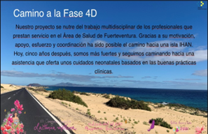 R: Bueno, yo soy desde el 2018 la presidenta de la CLA, formadora de la IHAN desde 2019, y responsable de la acreditación del hospital y de los centros de salud hasta la fase 3D de la IHAN en la que estamos actualmente. Pero todo esto es posible gracias al equipo que hemos formado y al trabajo duro realizado, a la gerencia que ha apoyado este proyecto desde el principio y al trabajo y entusiasmo de todos mis compañeros de Fuerteventura. Ahora hemos solicitado la fase 4D, que esperamos superar y poder conseguir el galardón IHAN.